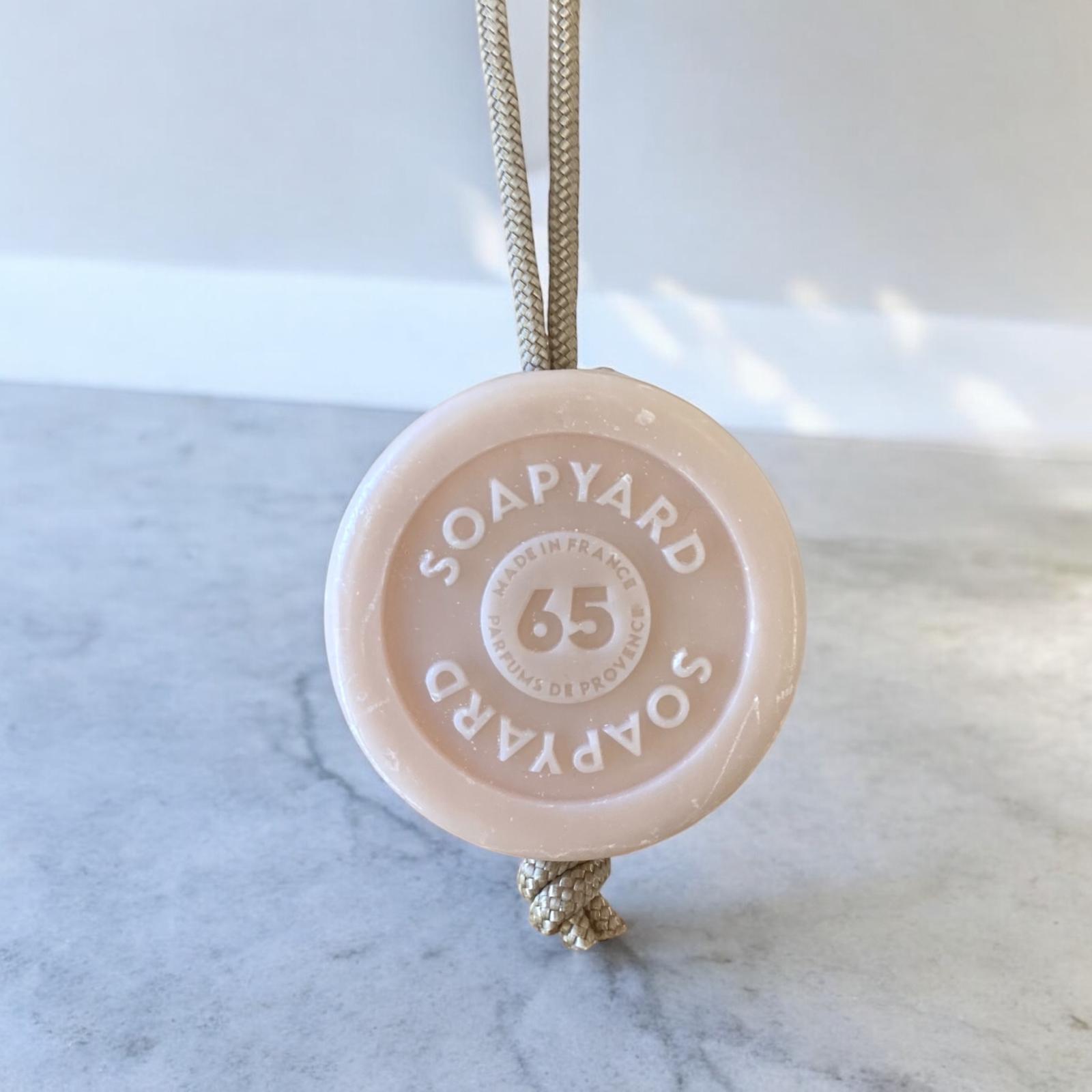 The soap can be used as a soap-on-a-rope, with a wall magnet, or as a regular round bar soap in a soap dish. The hole through the middle - like all our bespoke bars enables you to use it with a handy interchangeable rope perfect for hanging and keeping the soap hygienic and dry between uses.