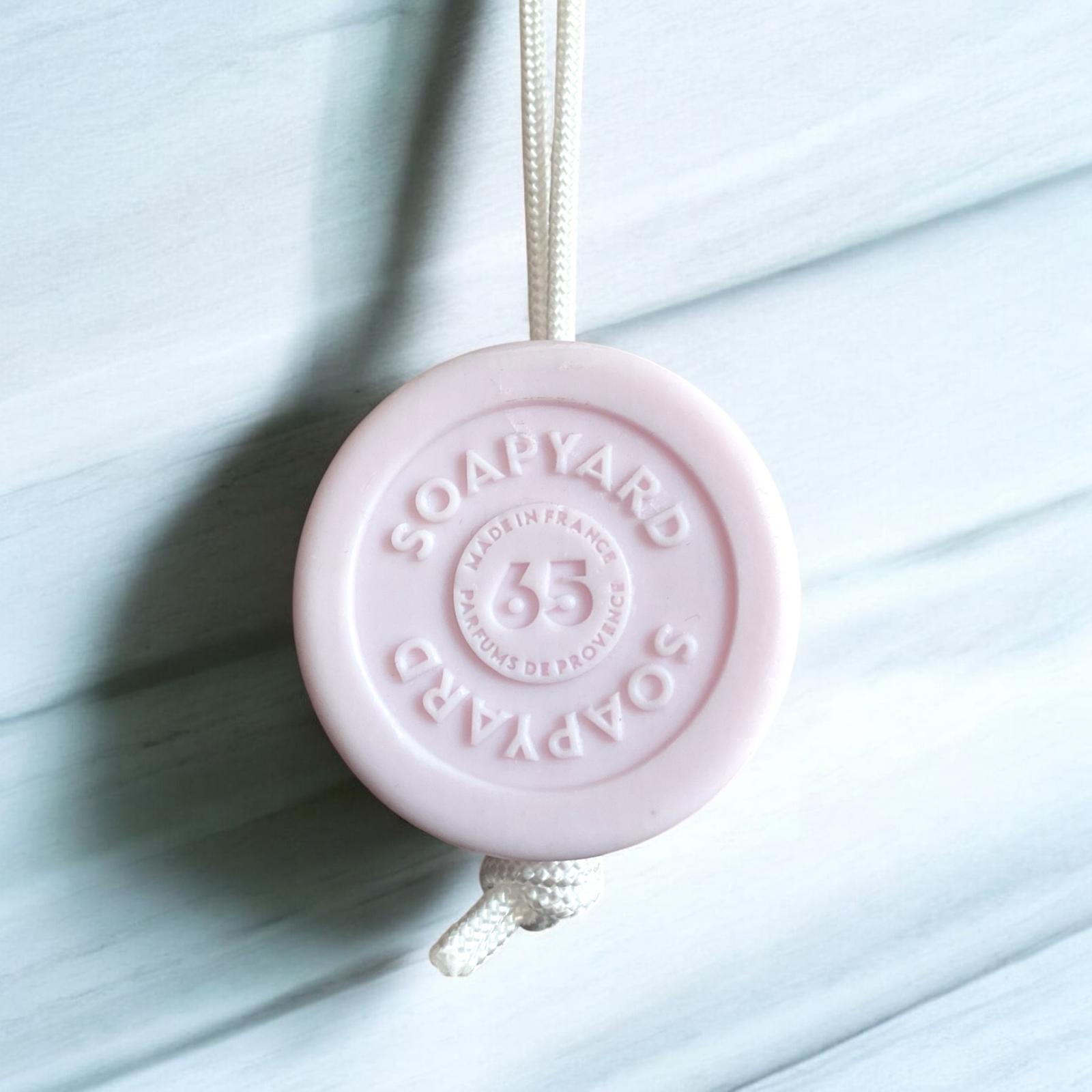 The soap can be used as a soap-on-a-rope, with a wall magnet, or as a regular round bar soap in a soap dish. The hole through the middle - like all our bespoke bars enables you to use it with a handy interchangeable rope perfect for hanging and keeping the soap hygienic and dry between uses.