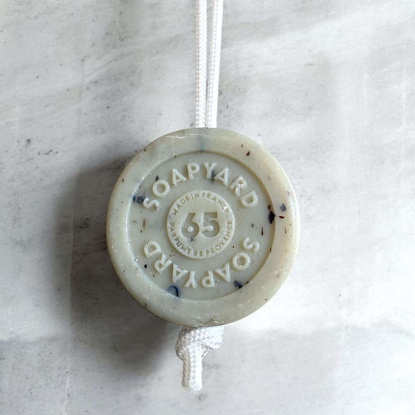 The soap can be used as a soap-on-a-rope, with a wall magnet, or as a regular round bar soap in a soap dish. The hole through the middle - like all our bespoke bars enables you to use it with a handy interchangeable rope perfect for hanging and keeping the soap hygienic and dry between uses.