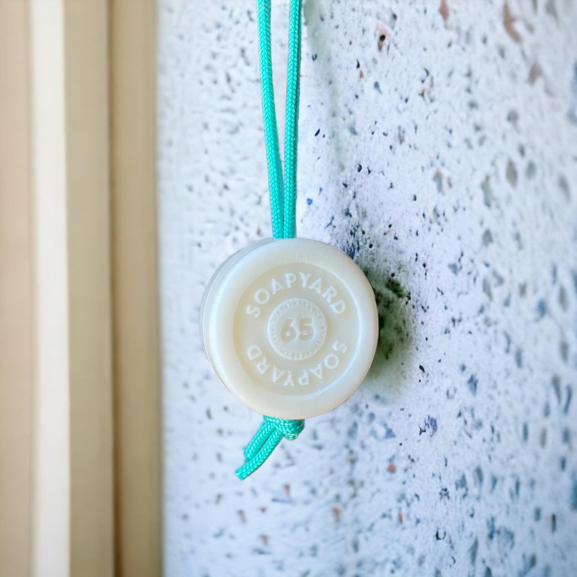The soap can be used as a soap-on-a-rope, with a wall magnet, or as a regular round bar soap in a soap dish. The hole through the middle - like all our bespoke bars enables you to use it with a handy interchangeable rope perfect for hanging and keeping the soap hygienic and dry between uses.